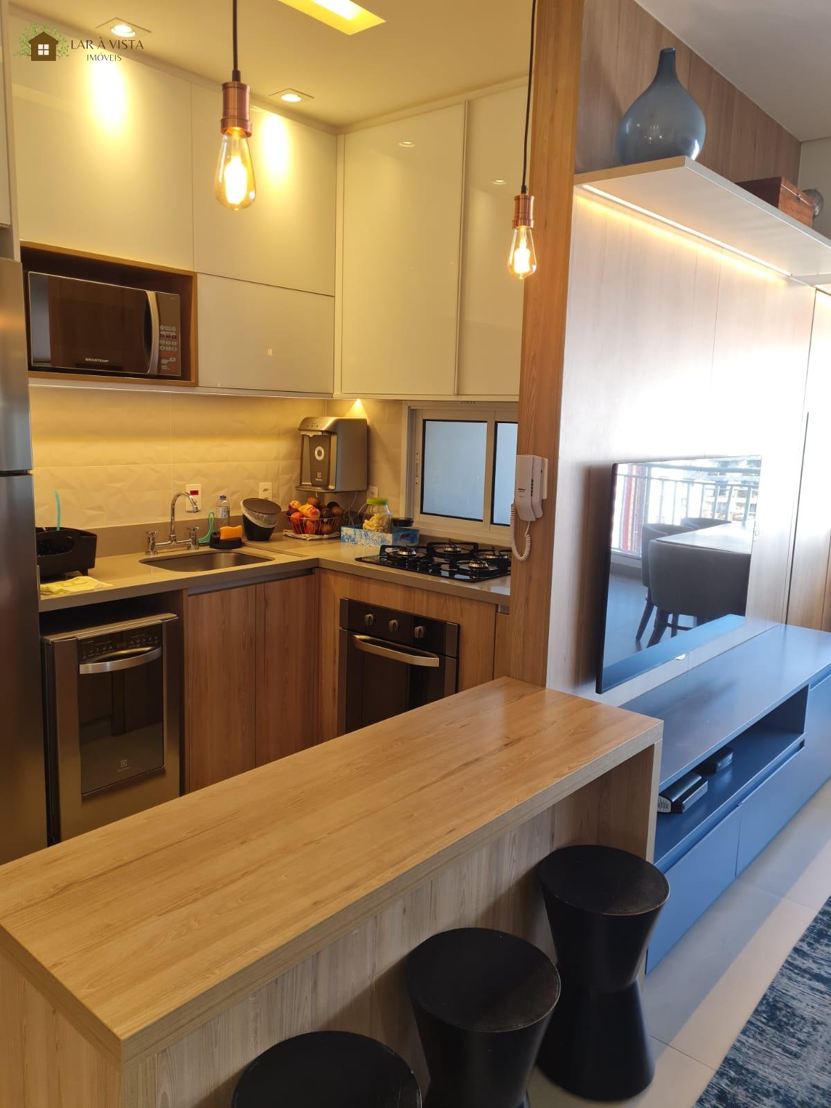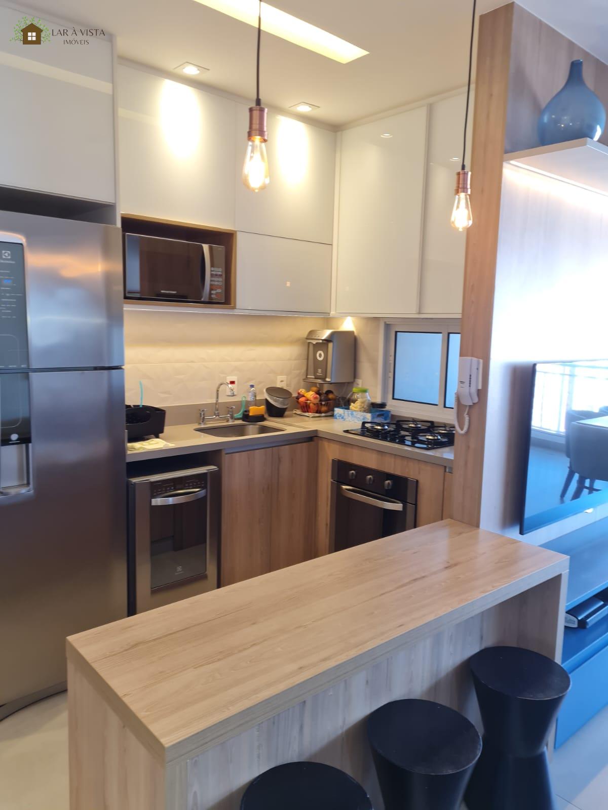 - Cozinha equipada com armários planejados, facilitando a organização e o armazenamento de utensílios.